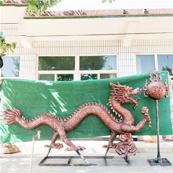 雙龍戲珠也叫二龍戲珠,雙龍戲珠銅雕塑是兩條龍戲耍(或搶奪)一顆火珠的表現形式。它的起源來自中國天文學中的星球運行圖,火珠是由月球演化來的。從西漢開始,雙龍戲珠便成為一種吉祥喜慶的裝飾圖紋,多用于建筑彩畫和高貴豪華的器皿裝飾上。