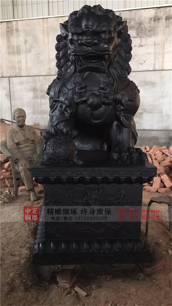 門的銅獅子的擺放是有規(guī)矩的。一般來說,都是一雄一雌,成雙成對(duì)的,而且一般都是左雄右雌,符合中國傳統(tǒng)男左女右的陰陽哲學(xué)。放在門口左側(cè)的雄獅一般都雕成右前爪玩弄繡球或者兩前爪之間方一個(gè)繡球;門口右側(cè)雌獅則雕成左前爪撫摸幼獅或者兩前爪之間臥一幼獅。 右前爪玩弄繡球的雄獅,左前爪撫摸幼獅的雌獅。石獅子在大門兩側(cè)的擺放都是以人從大門里出來的方向?yàn)閰⒄盏摹.?dāng)人從大門里出來時(shí),雄獅應(yīng)該在人的左側(cè),而雌獅則是在人的右側(cè)。而從門外進(jìn)入時(shí),則剛好相反。