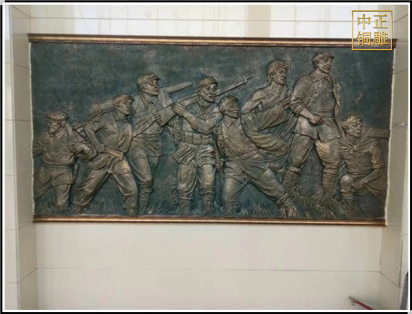 銅浮雕同時(shí)可以與建筑設(shè)計(jì),環(huán)境藝術(shù)、室內(nèi)設(shè)計(jì)、展示設(shè)計(jì)等領(lǐng)域相結(jié)合。在這種多樣空間形式的載體中.銅浮雕得到了更多的思維空間,就可能有更多突破和創(chuàng)新。反過(guò)來(lái)它也為這些藝術(shù)領(lǐng)域帶來(lái)更強(qiáng)的藝術(shù)教果和視覺(jué)審美的震撼。