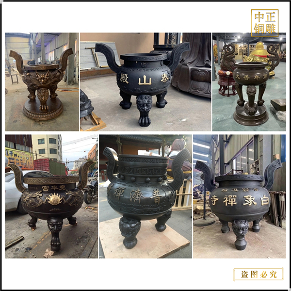 中正銅雕-寺院室外純銅香爐、寺院室外純銅香爐價格、寺院室外純銅香爐鑄造,我公司集科研、開發設計、普通鑄造、一次性整體澆鑄、精密鑄造于一體。本公司技術力量雄厚,設備,不但重視中國青銅器原有的藝術風格,還繼承了文物原有的藝術品味,在繼承和發揚古老文化的同時,更深一步為新老客戶定身量制各種銅制、鐵制工藝品等產品,曾多次受到寺廟長老和美術學院教授的好評。
